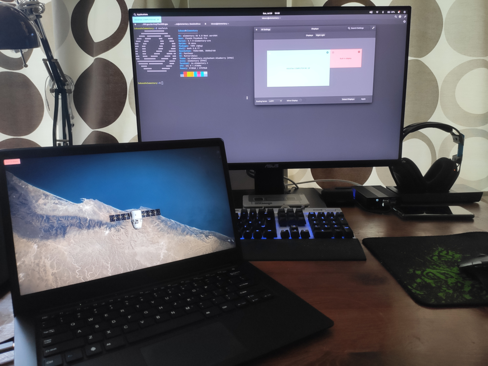 Docked Pinebook Pro running elementary OS pre-release
