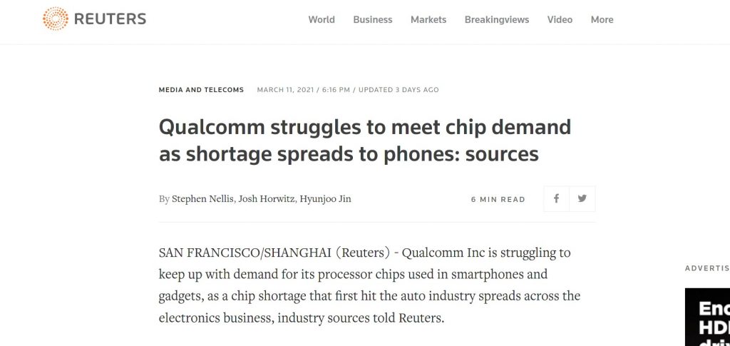 This now affects much of the electronics industry, including tech giants - via Reuters