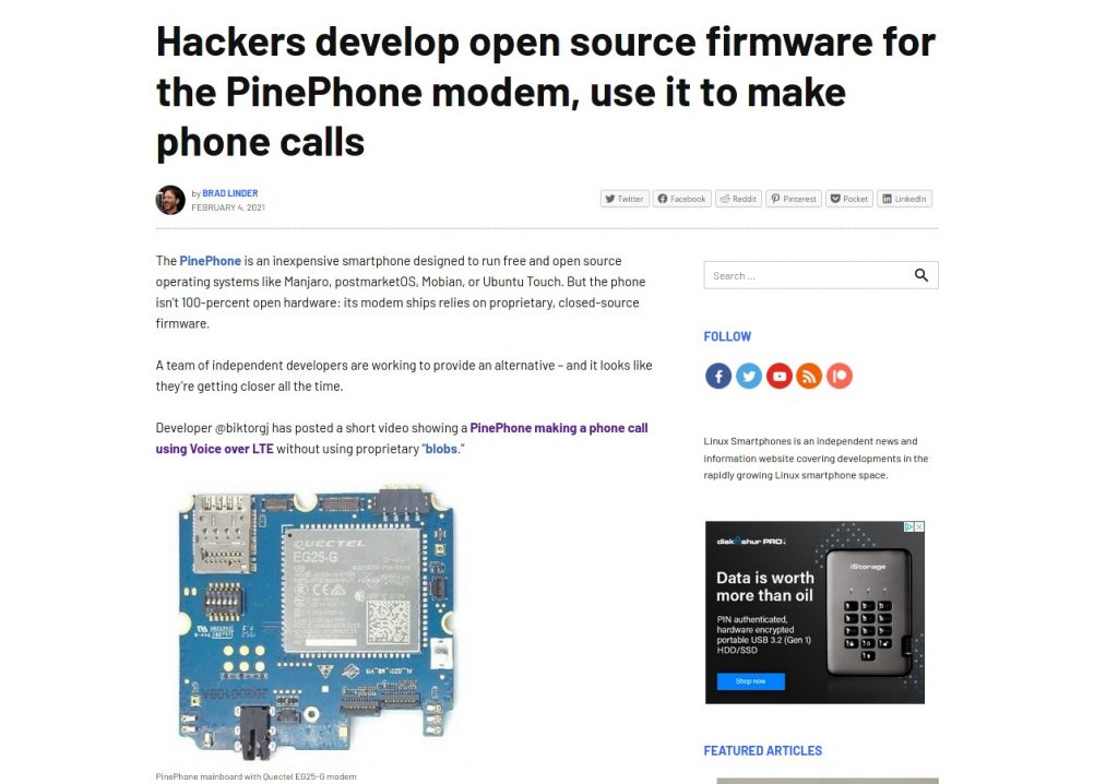 The news of the modem running an open stack got media’s attention - article in screenshot