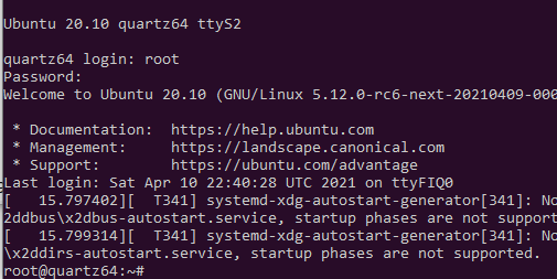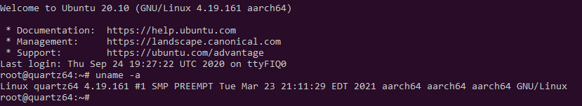 We are currently using the public facing development branches of Rockchip’s repositories. For Quartz64, this means Rockchip’s heavily customized U-boot-2018 and Linux-4.19 customized for Android. We are presently stuck using the pre-built SPL and Trust binaries from Rockchip-Android until mainline ATF is released. The boot system has changed significantly from earlier Rockchip generations - the new system is simpler, but will require retooling the mkimage tool to compensate for the new format. Here is what works as of today: for starters, U-boot allows booting from micro SD cards as well as eMMC, although the latter hasn’t been tested. We can load kernels, device-trees and initrd images. USB-OTG works partially too. As for Linux itself, we are now able to boot both BSP Linux 4.19 as well as mainline Linux.