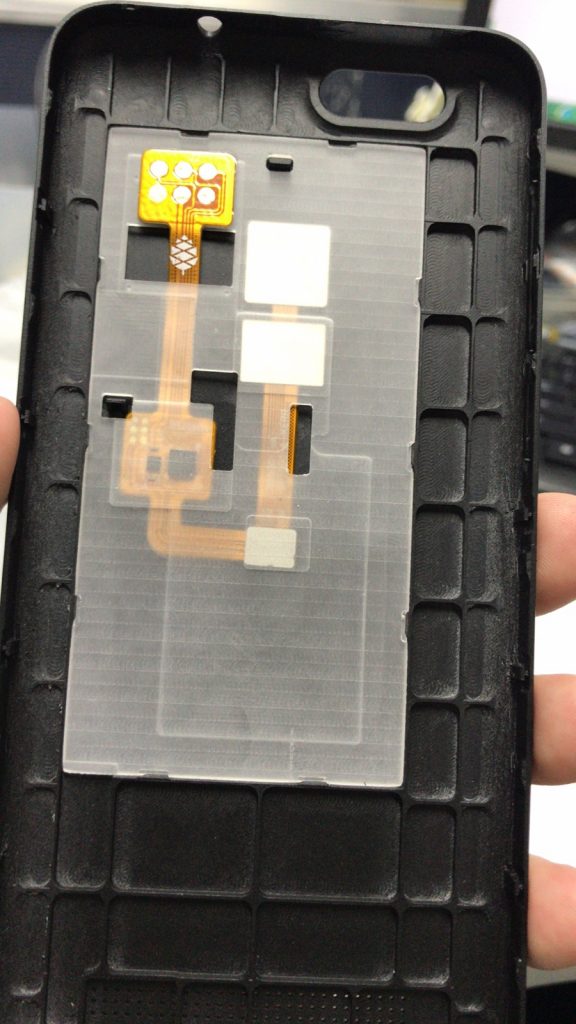 Left: fingerprint reader / right: wireless charging coil and circuitry