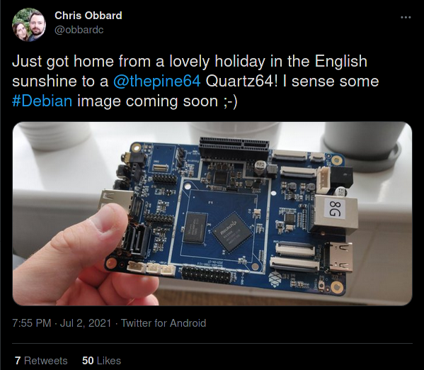 - Quartz64: software progressing at a very rapid pace and upstreaming of patches is underway