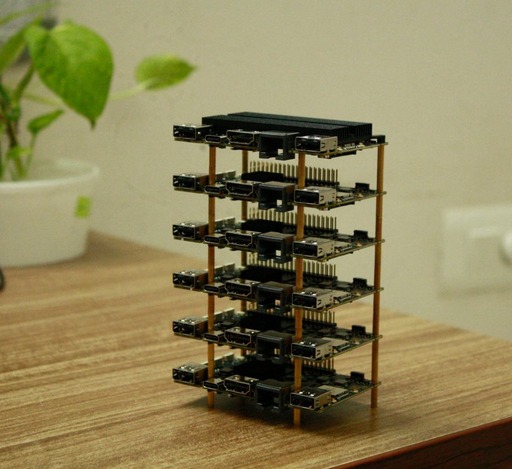 I was thinking about various layouts that can be used for this temporary cluster. I can place every node on the side, but that will be kind of big. I can also place the nodes vertically, but that would be harder to mount, or I could just stack the boards and use distance field, as Electr0Lyte did with his cluster: