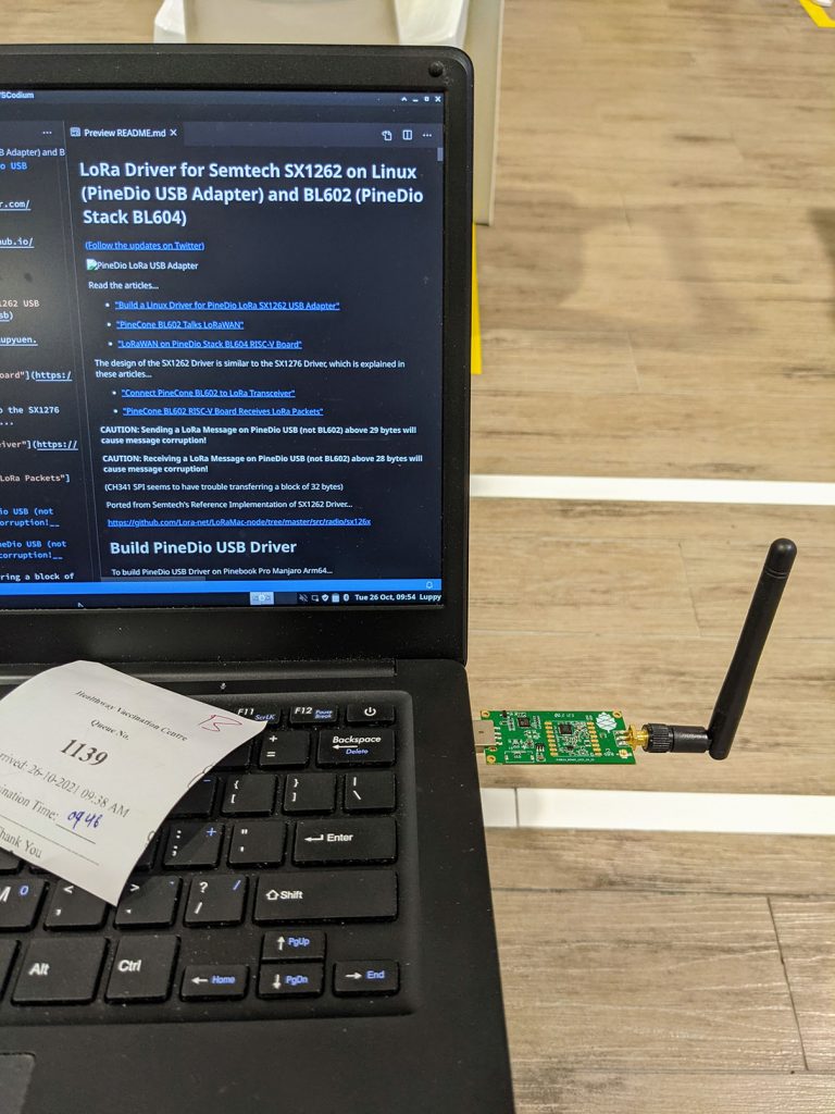 LoRa SX1262 Linux driver for the USB PineDio adapter - via Lup