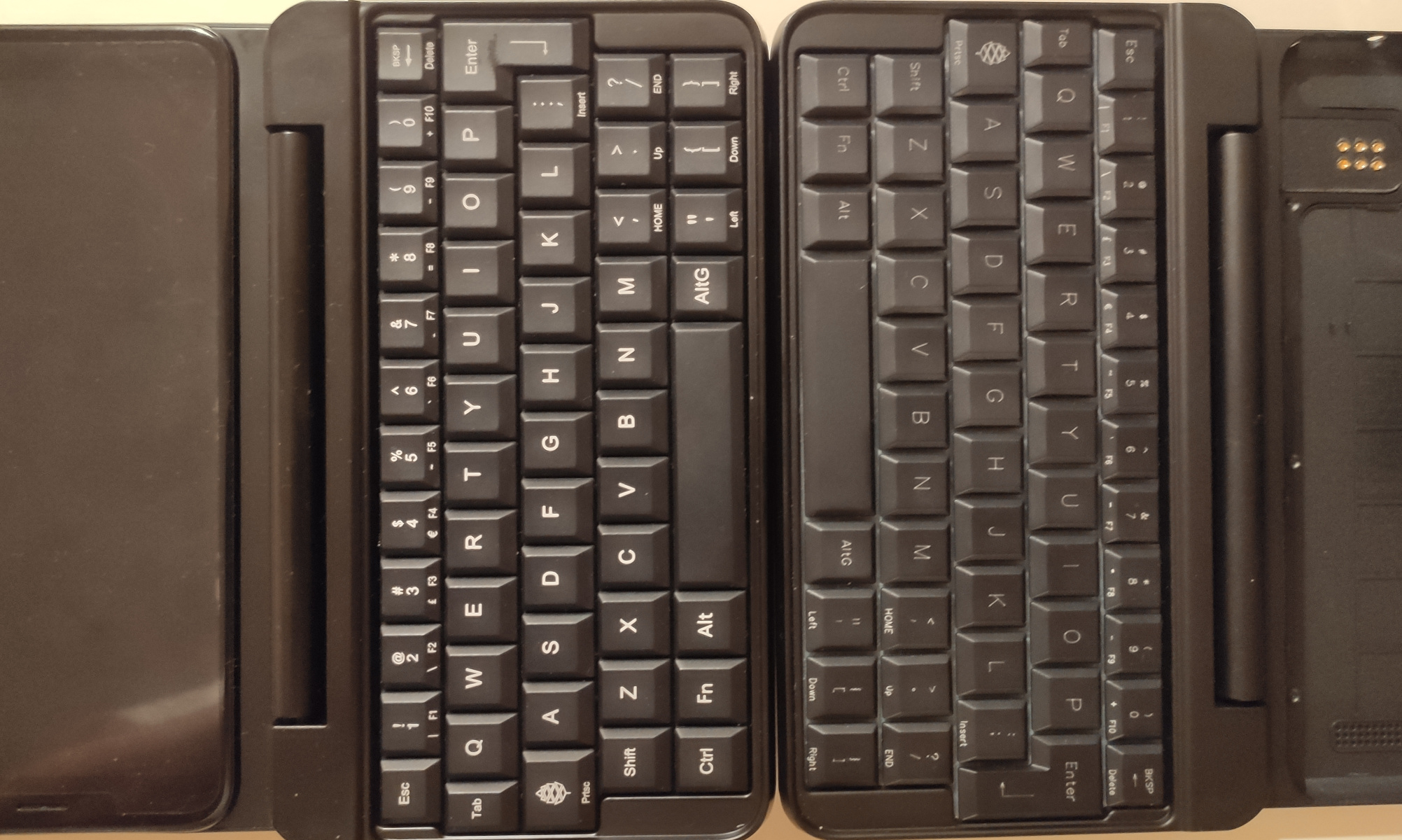 PinePhone (Pro) production keyboard fully extended laying flat