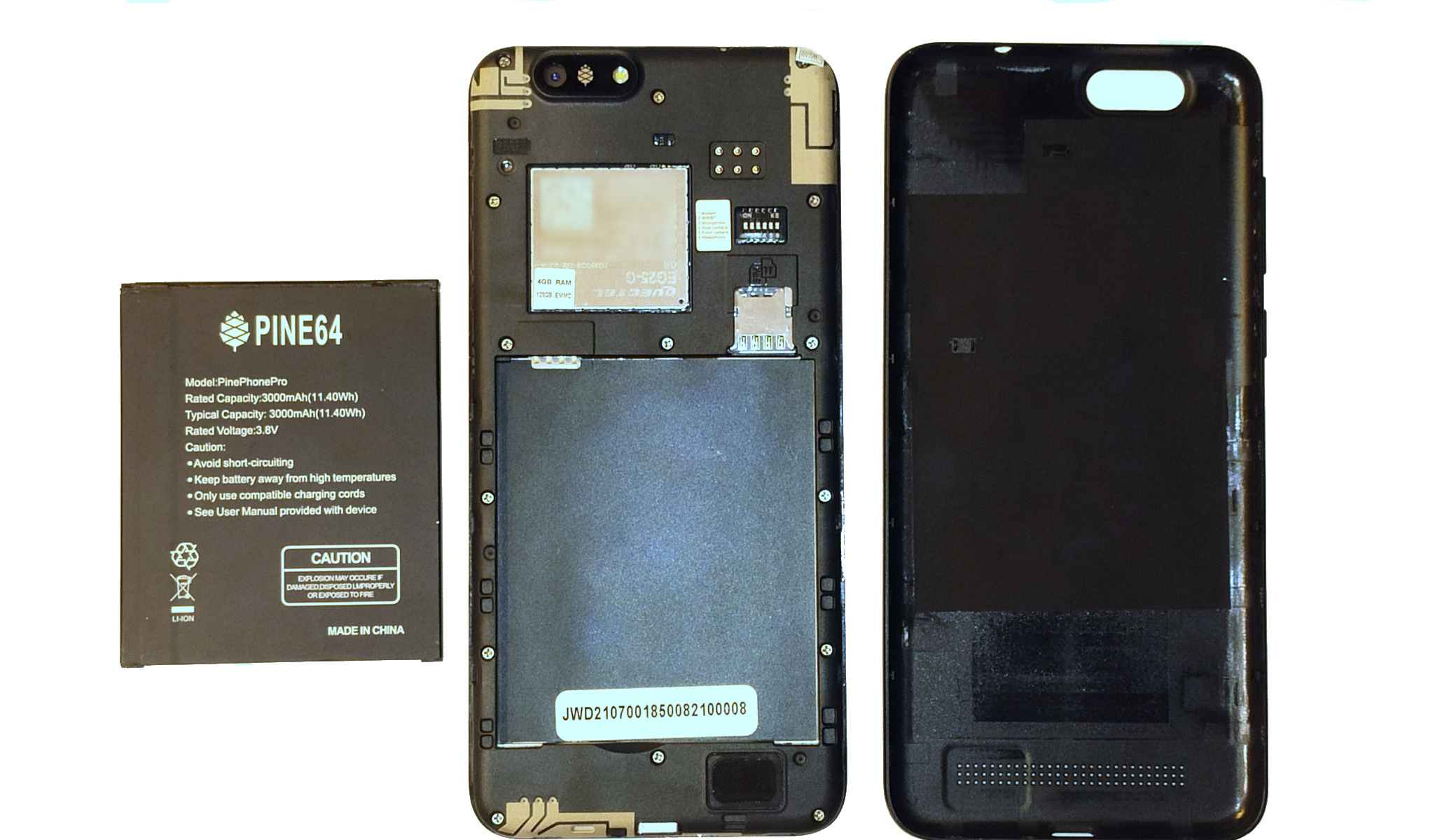 PinePhone Pro with back case and battery removed