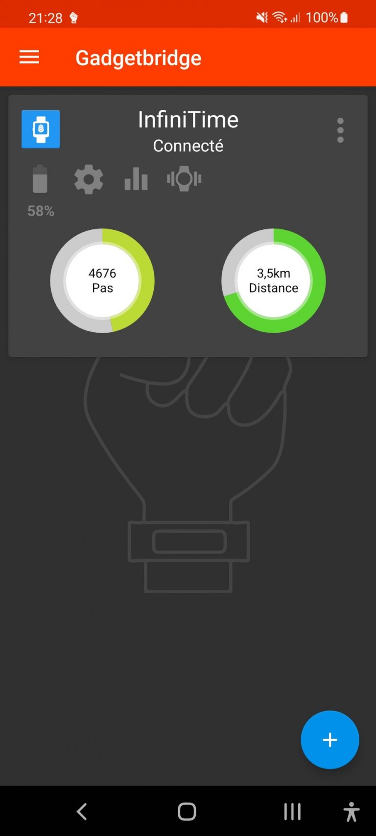 A new version of Gadgetbridge that integrates the step counter of InfiniTime was recently published. I think this is a nice addition to the companion app, that now displays the count of steps and also displays the historical data in graphs.