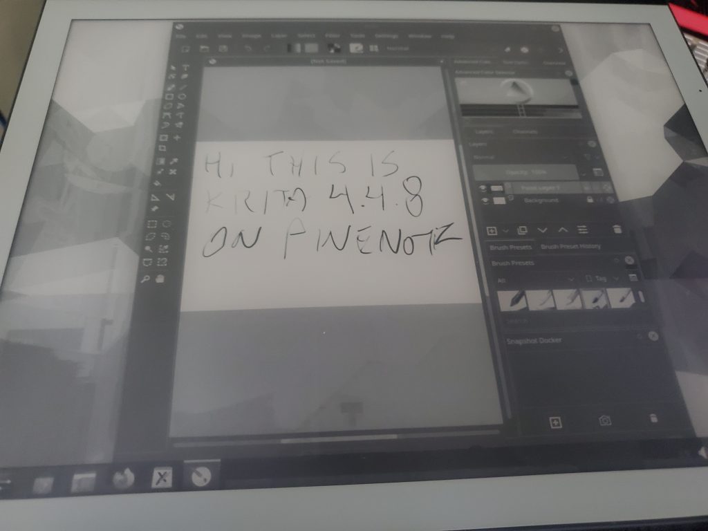 EMR pen pressure working in Krita on the PineNote - via Samuel Holland