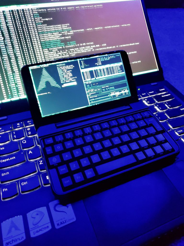 People are really treating the PinePhone / Pro with the keyboard as a tiny computer - picture via terminal_junkie on Twitter