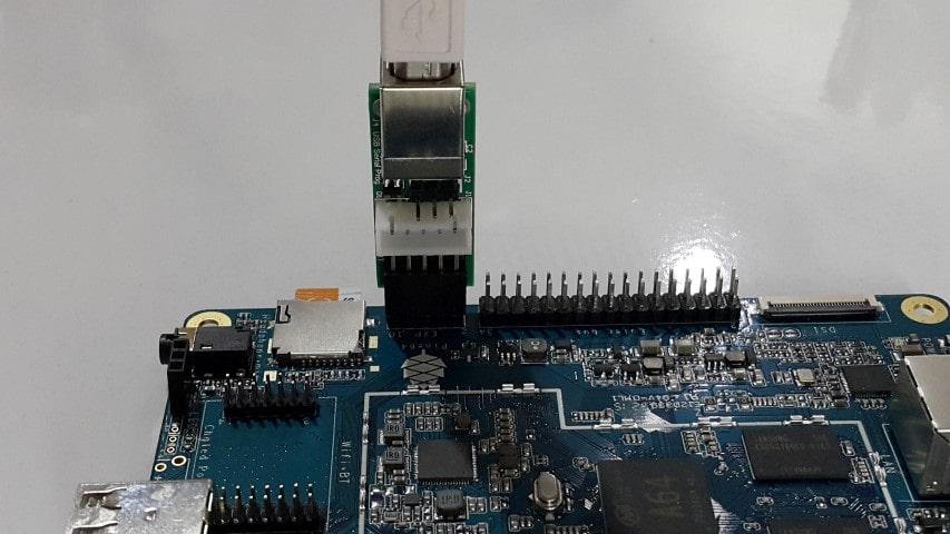 On board 5x2pin connector can direct insert into Pine A64 Exp Bus for UART0 Console access