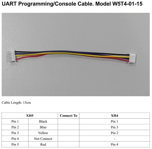 On board XH5 2.54mm pitch connector for UART0 allow easy connection to USB/UART adapter for console access