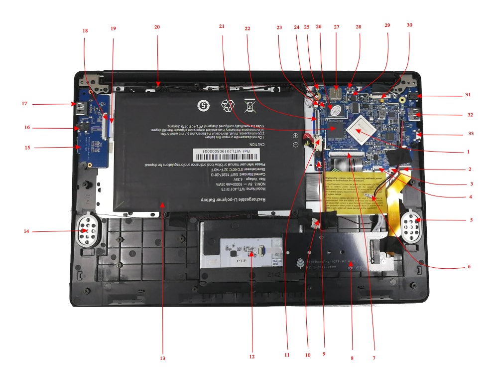 - Later batches 9600 mAh / 36.48 Wh model WYC40110175P Lithium Battery Specification