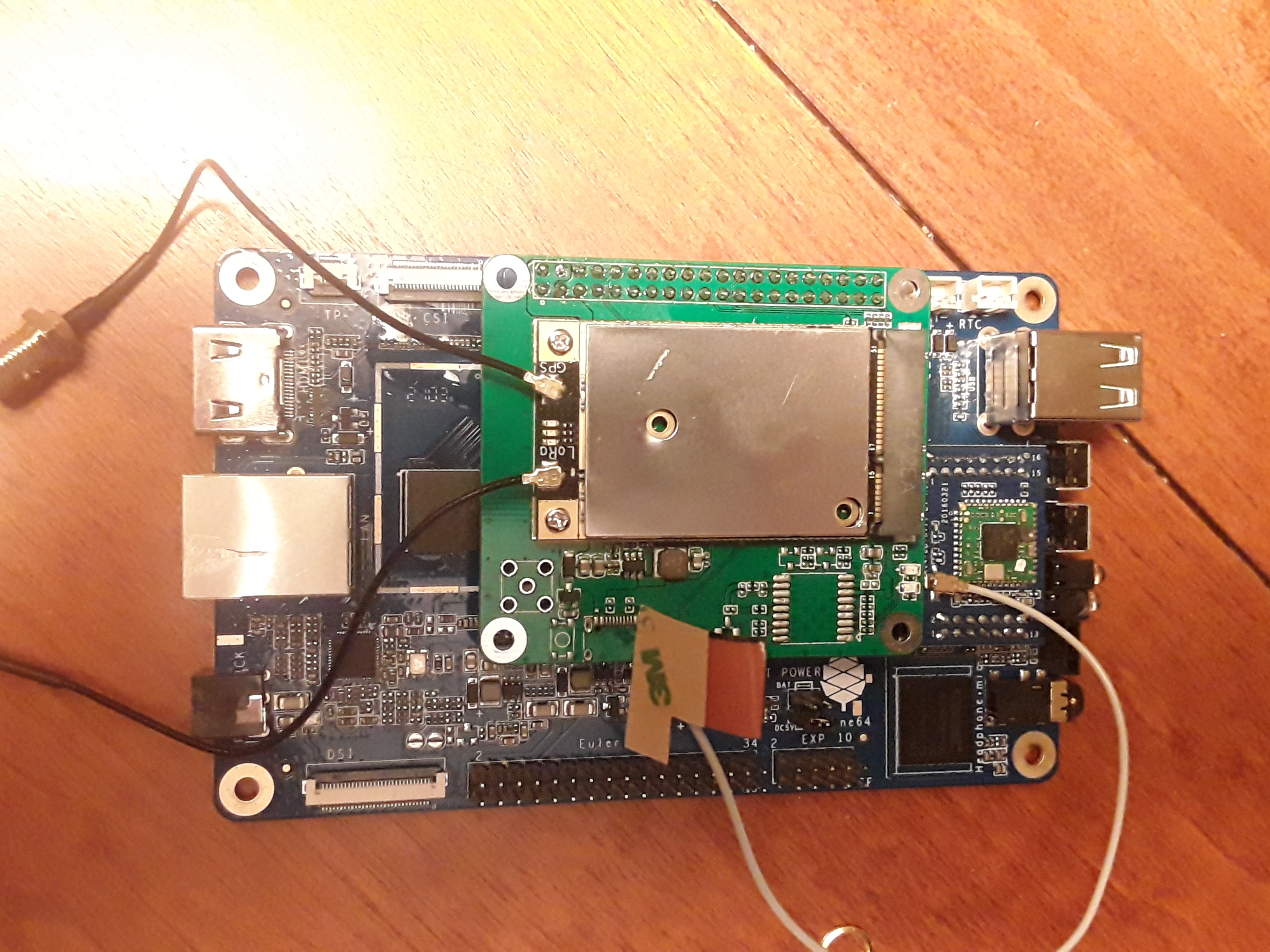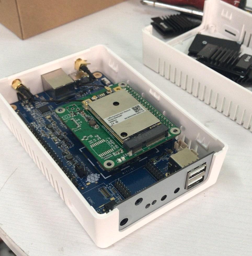 The gateway will be available in two variants - indoor and outdoor. All that is known about the outdoor unit is that it will have “an aluminum, rugged and water resistant case”. The indoor unit consists of a PINE A64-LTS, fitted with a purpose built hat (adapter) which uses a LoRa module by RakWireless. The chipset used is the SX1303, and the module via the SPI interface. There are two external connections on the enclosure for the GPS and loRa antenna.