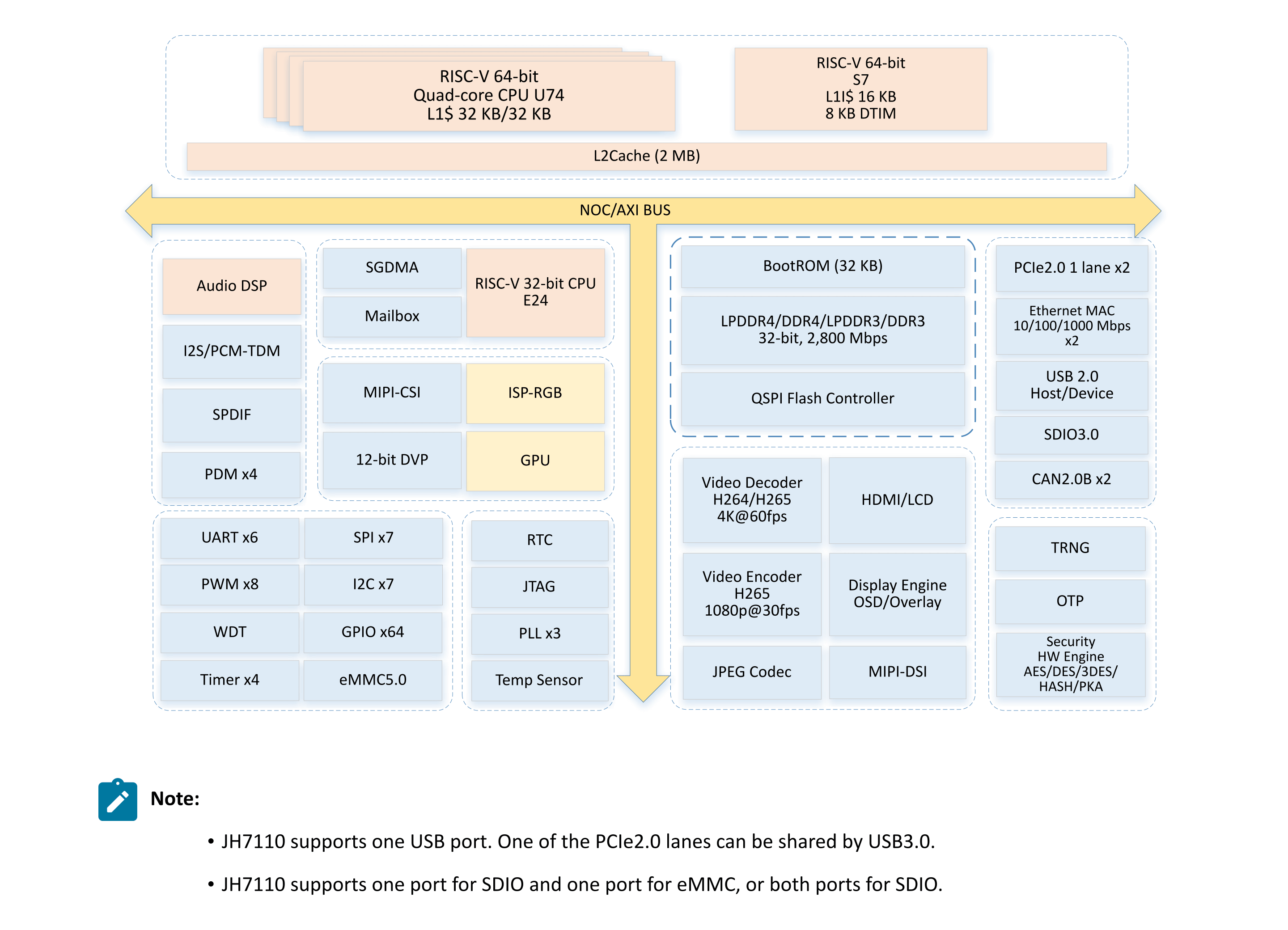 - includes RV64IMAC S7 monitor core, 16 KB L1 I-Cache with ECC, 8 KB DTIM with ECC